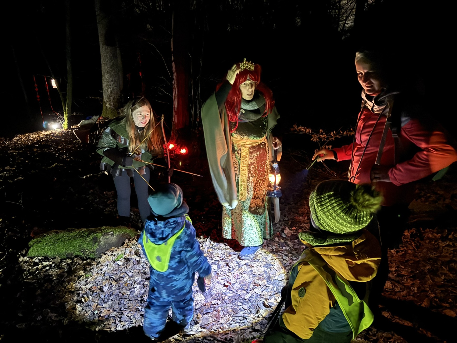An enger kaler, klorer Wanternuecht hu sech d' Kanner mat hiren Elteren op de Wee duerch de Groussbësch gemaach fir hiert Léierpersonal ze befreien, dat duerch e Fluch a Märchefigurë verzaubert gouf. Ënnerwee goufe se mat Iessen a Gedrénks belount.